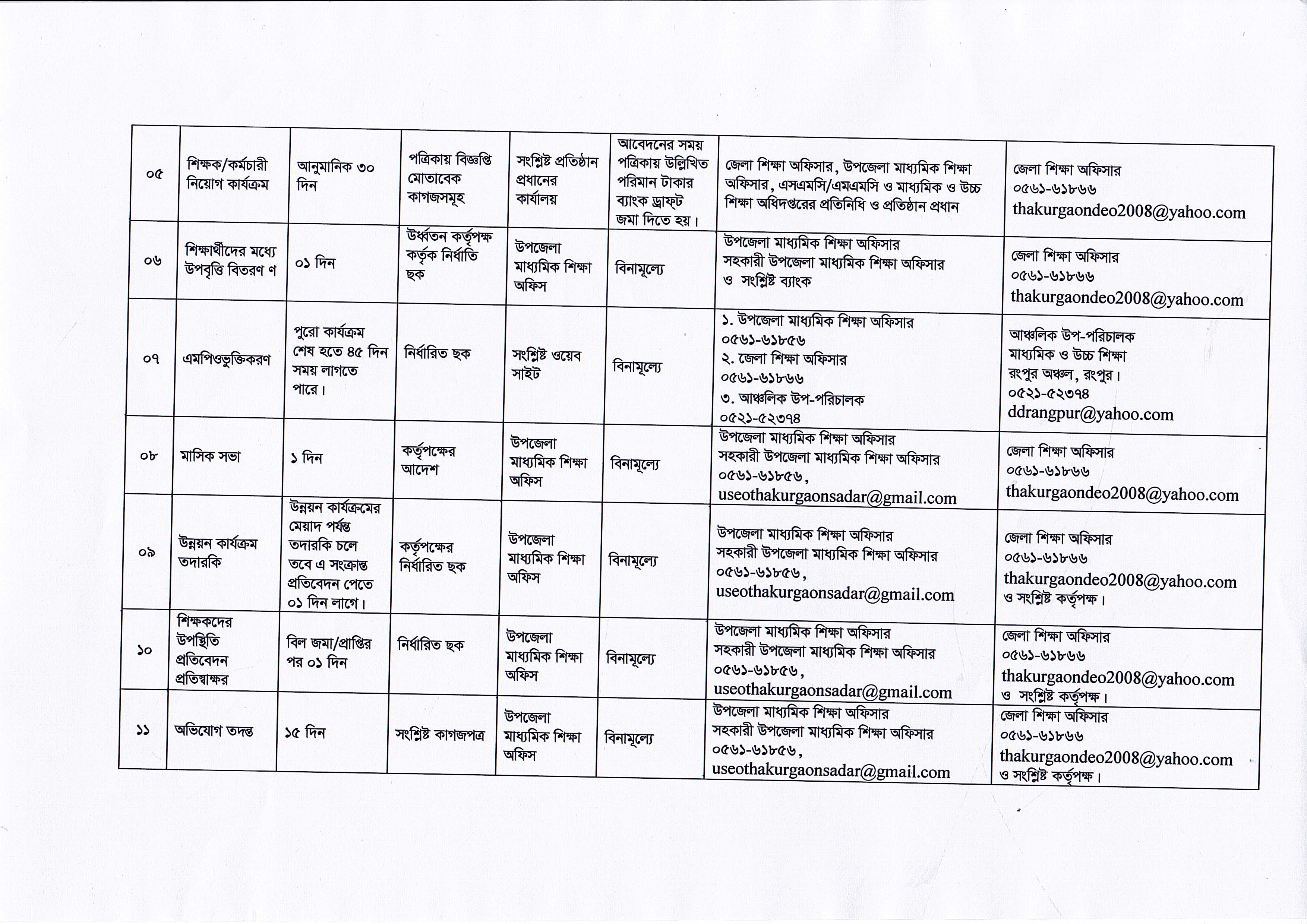 | ০১। | এমপিও ভুক্তিকরণ | পুরো কার্যক্রম শেষ হতে ৩০ হতে ৪৫ দিন সময় লাগতে পারে। | অনলাইনে নিদিষ্ট ওয়েব সাইট |